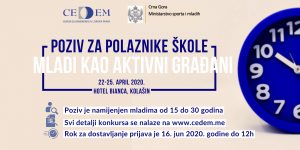 Centar za demokratiju i ljudska prava – CEDEM, uz finansijsku podršku Ministarstva sporta i omladine Crne Gore, realizuje projekat „Jačanje kompetencija mladih za učešće u