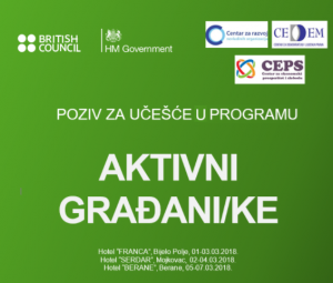 CEDEM je u saradnji sa British Council-om realizovao obuku „Aktivni građani“ u Mojkovcu, u periodu 2/4. mart. Preko 30 mladih naučilo je o značaju i