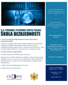 CEDEM je 5/6. februara u hotelu Palace u Petrovcu, organizovala je škola „Mladi i bezbednost“ u okviru projekta „U susret savremenim bezbednosnim izazovima: edukacija i
